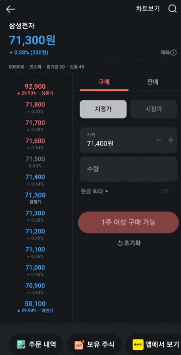 - 기능 제한: 전문 증권사 앱에 비해 고급 기능 부족 (예: 차트 분석, 조건 검색 등)